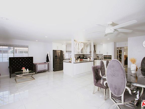 Nestled Adjacent to Sherwood Forest! This impeccably remodeled residence is a true gem, situated in a serene Northridge residential enclave. As you enter, you are greeted by a seamlessly flowing, light-drenched living space that connects to an expansive dining area and family room. The kitchen is a standout, boasting white shaker cabinets, quartz countertops, a sizable kitchen island, and chic lighting fixtures. A contemporary stone fireplace adds a touch of sophistication to the open living area. The generous master bedroom showcases a remodeled bathroom with a timeless double vanity and an ample walk-in closet. Additional highlights include a separate laundry room, a two-car attached garage, and a spacious front yard offering ample space for larger vehicles. The property has been upgraded to a 320-amp electrical panel, and an electric car charger has been thoughtfully installed. Step outside to discover a newly laid concrete backyard and charming outdoor gazebos, creating an idyllic setting for your relaxation and entertainment needs. This home is truly a MUST SEE, embodying a perfect blend of tasteful design and modern functionality.