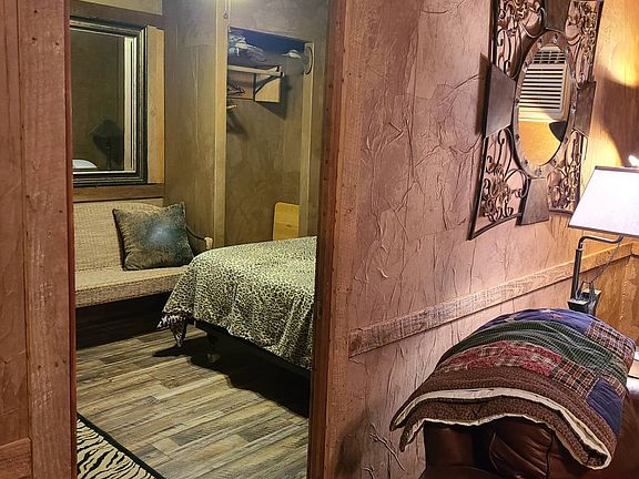 Tree House Cabin Covered Porch with an awesome elevated view from the glass lined wall. This charming cabin has been extensively updated. New luxury vinyl throughout. Two bedrooms, one bath and a large laundry room/pantry. Custom treated textured walls throughout. New energy efficient central air and heat. New water heater. New walnut kitchen cabinets, and bar top, and farmhouse style sink. Closed cell spray foam under entire pier and beam foundation crawl space.. 20 ft shipping container conveys. Lot 3 block 7 The Little River Ranch has a maintained grass air strip. Access to the Little River for kayaking, canoeing, swimming or fishing. ATV riding is also accessible. From the Tree House Cabin you will have access to thousands of acres to hunt. Area is known for premier deer hunting. Private access, only property owners and their guests have access. Avoid the big city rental crowds. 50 minutes north of booming Hochatowntown/Beavers Bend where the new Choctaw Landing Casino Resort will be opening end of this year. Visit or come back to your private slice of heaven. Also accessible from Rattan, OK