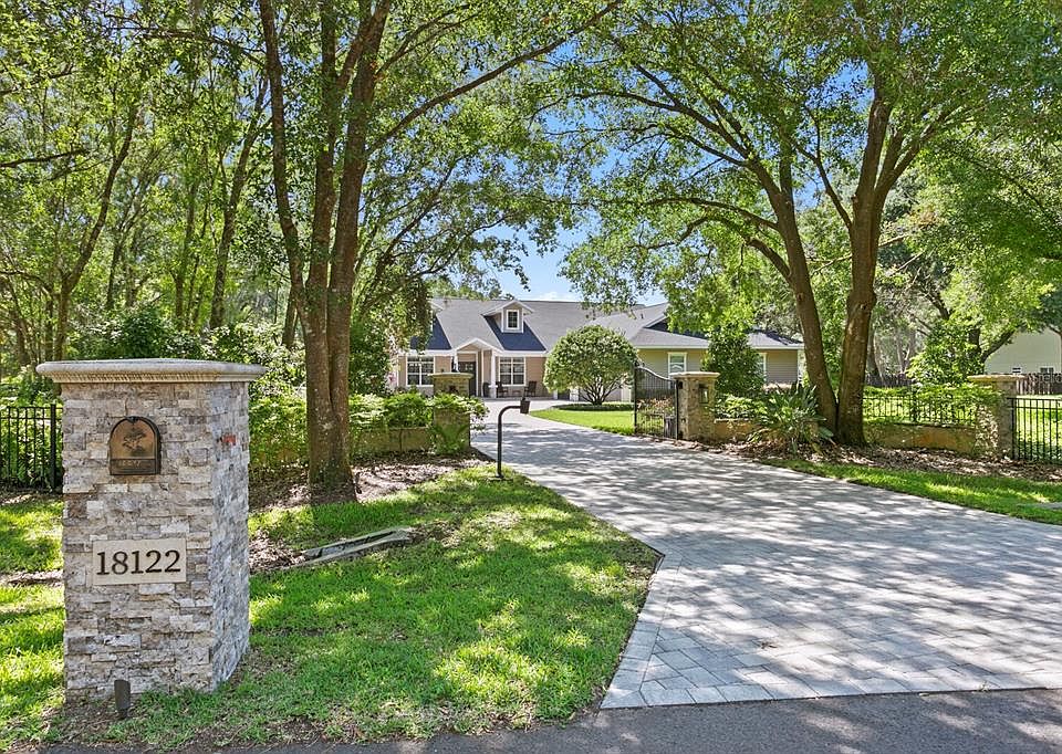 Welcome home to your private estate oasis in beautiful Odessa, FL. Situated on a gated 1.25 acre wooded, pond-front lot, this home has been completely re-imagined inside and out with impeccable designer finishes. As you arrive, the gated entry opens to an expansive paver driveway leading up to the nearly 4,700sqft property. Boasting 5 bedrooms, 4.5 baths, a private office, media room and garage tandem parking for up to 6 cars, this property offers something for everyone. Head from the travertine front porch through the double doors and you’ll be welcomed by an open, modern floorplan. With engineered hardwood floors throughout the main living areas and elegant décor, you’ll immediately feel relaxed and at home. The large family room has coffered ceilings, a decorative fireplace, custom built-ins and accordion folding sliding doors that lead out to an amazing pool area. The Ryan Hughes Design pool is simply spectacular and redefines outdoor Florida living & entertaining. At over 3,600sqft, your screen-enclosed outdoor oasis includes a heated saltwater pool with multiple swim shelves and seating areas, infinity edge spa, spacious pergola, conversation pit with fire table and an outdoor TV, all backing up to a private, conservation lot with no rear neighbors. Next to your pool is an equally impressive outdoor kitchen that includes a spacious bar area with 2 additional TVs, double kegerator, 2 beverage refrigerators, an ice maker and large grill with a commercial vent hood. Head inside to the primary suite that spans the entire left side of the home, offering the utmost in privacy. The large bedroom has a generous sitting area with direct pool access. You’ll find a spacious custom walk-in closet and spa-like primary bath. Just past the beverage station, the primary bath includes double vessel sinks, a hammered copper soaking tub, walk-in shower area, beautifully backlit with glass block, 2 towel warming drawers and separate water closet. The spacious home office is connected to the primary suite. Back through the family room is the adjacent dining room and stunning chef’s kitchen. Designed with dual quartz islands, this kitchen features a walk-in wine cellar with a plum wine dispenser system, hidden pantry and complete line of professional appliances including Wolf induction cooktop and dual convection ovens, 60” Sub-Zero refrigerator, Thermador coffee station and more. Enjoy casual dining with the banquette seating area. The hallway behind the kitchen leads to 3 large bedrooms, 3 full & 1 half baths, along with a large utility room, bonus room (possible 5th bedroom) and access to your 1,300+sqft garage. The private media room includes a 180” screen and plenty of room for enjoying movies & sports with family and friends. The spacious side yard is fully fenced and the backyard features a paver walkway down to your dock where you can launch a canoe or kayak and paddle in the backyard pond. Zoned for Hillsborough top-rated schools (Hammond/Martinez/Steinbrenner) and no HOA restrictions allow you the flexibility to make this impressive property your new place to call home.