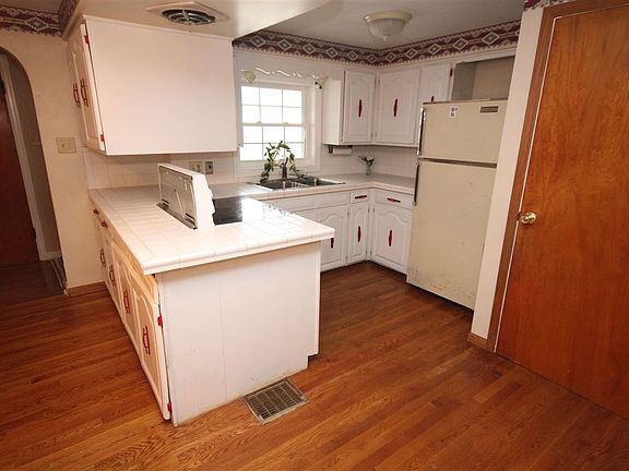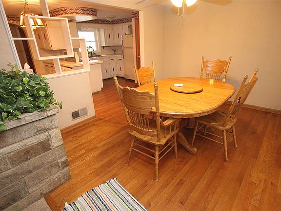Very nicely maintained one story on aa finished basement. City Water & Sewer. Over 1300 square feet. 22x15 living room w/lots of windows and gas fireplace. Spacious kitchen w/tile counter tops and back splash, Stove, Refrigerator, Dishwasher remain. DR, KT and all bedrooms boast beautiful wood flooring. New concrete driveway. 2C Oversized A-Gar is 22x30. Newer windows. Large 16x16 deck. Plenty of storage space. Plus an 8x10 Shed.
