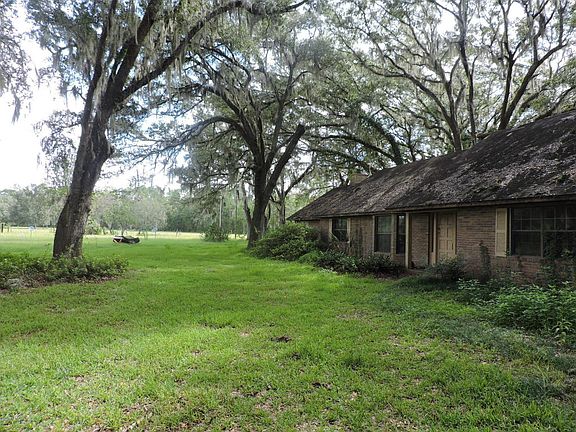 Absolutely stunning property with lush pasture, live oak hammocks throughout, a small stream traverses the northern portion of the property and empties into a small pond. 124 acre ranch in Hawthorne with road frontage on SR 20 and Cr 2082. Rails to trails runs along the southern boundary. The 3227 sf brick home features a large kitchen with breakfast nook overlooking lush pasture canopied by century live oaks, a good sized living room, separte dining room, family room with bar and fireplace, 4 bedrooms, 3.5 baths, and much, much more. The property is fenced and crossed fenced for horses, cows and other livestock. There are 2 mobile homes, a barn and other out buildings that need some tlc. Call for appointment and maps.