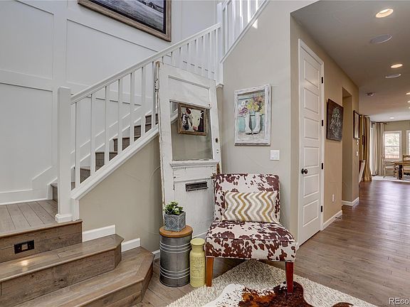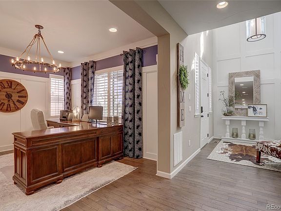 Welcome home to this amazing former model home. From the moment you walk up to the fun yellow door you will know that nothing has been overlooked. Your breath will be taken away the moment you walk in the front door when you are welcomed by the two-story entry way and beautifully custom décor walls and light fixtures. The main level offers plenty of space for entertaining or family living. The large kitchen is a cook's dream, offering a large island and top of the line appliances making cooking and baking a dream. Off the kitchen is a small separate work space, large eating nook and family room. The main level also offers a formal dinning room or flex space, office, mud room off the garage, and a very cute half bath. Upstairs does not disappoint with a large master bedroom and spa master bathroom, three more bedrooms (one with its own bath) and a fabulous laundry room. Living in Colorado is about the outdoors and this home gives you that too! The private back yard and covered patio is great for reading a book or a delicious BBQ. If you are a garage person, then this home offers that too! With a split garage plan offering a large two-car garage and a one car garage, the options are endless. Look no farther this is the perfect home for you.
