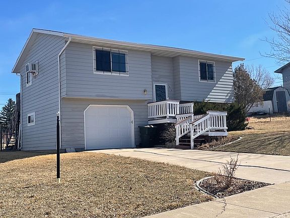 Listed by Marysia McDowall, RE/MAX In The Hills, 605-641-2500. Cozy 3 bedroom, 2 bathroom home with a spacious yard with fruit trees! The main floor of the home has a nice living room with a large window for natural light. The kitchen/dining combo has great counter space for making meals. You can access the large back deck form the kitchen. Step out on the deck and look over your yard with fruit trees, bushes, and a garden area! The primary bedroom is on the main level along with the second bedroom. The lower level of the home has a spacious laundry room with storage and a 60 gallon energy efficient water heater (hybrid heat pump). The lower level bedroom has a nice window to let in the sunshine and there is a full bathroom just outside the door. The single car garage can be access from the lower level. Home is being sold in AS-IS Condition. Buyer and buyers agent to verify all information on this mls document. Measurements are approximate and some taken from the courthouse.