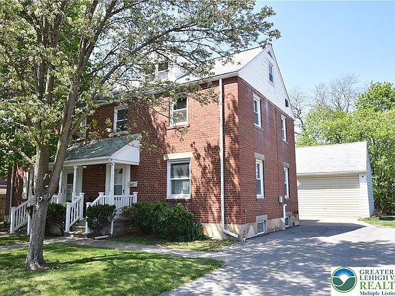 Exceptional all brick twin located in the desirable Little Lehigh Manor subdivision. This well maintained home has beautiful hardwood floors throughout both the first and second floors. A large living room opens to the formal dining room and kitchen. The second floor has two nice sized bedrooms, complete with closets and ceiling fans. A convienent office with built-in desk and shelving unit could be an additional bedroom. The third floor bedroom has been clompletely remodeled and boasts beautiful flooring and abundance of natural light along with indirect ceiling lighting. A full basement contains a small shop area and laundry as well as half bath. A large covered patio with walkway to an oversized two car garage with electric garage door opener, 12 foot garage door and interior ceiling height. A small wood stove provides heat. The second floor of the garage is accessed by the pull down walk-up staircase and provides ample storage. Gas heat is complemented by a new electrical service and panel. Storage shed along with good sized rear yard and paved drive round out the property. Excellent location, convenient to major roots and interstate 78. Certificate of occupancy from the city will be provided at closing.
