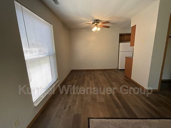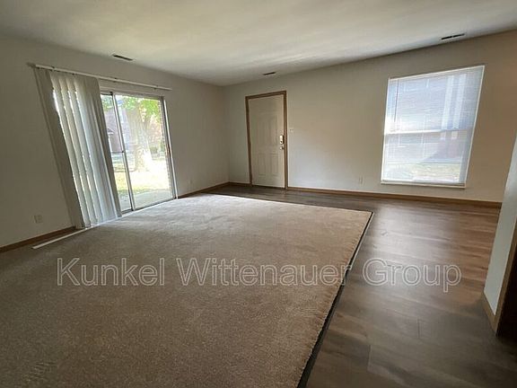 Available Now! Two bedrooms one full bath main level unit with Exterior Storage. Large living room with carpet and laminate and big hall closet. Kitchen laminate floors with electric stove and refrigerator. The dining room has a laminate floor and ceiling fan. Both bedrooms have carpet and ceiling fans. The full bathroom has a laminate floor and linen closet. The living room also has patio doors that lead to the concrete patio with the storage area.. Lawn care, snow removal and trash is included. Pets negotiable, deposit contingent on pet screening, pets 25 pounds or less, limit one pet. Room Measurements LR 16.4 x 14.9 DR 9.0 x 8.0 KITCHEN 8.0 x 7.3 MBR 12.6 x 11.4 BR2 11.9 x 9.0 BA 7.3 x 5.0