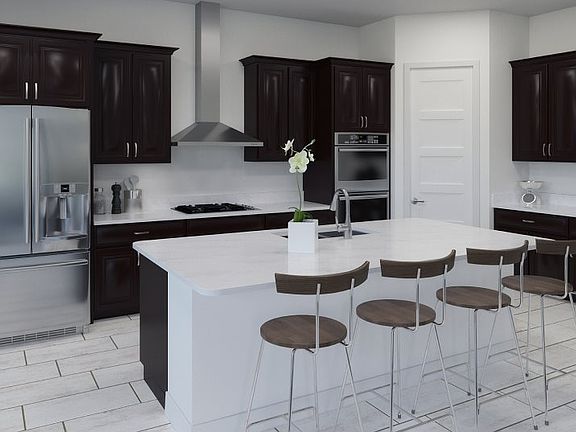 The collection's largest and only two-story home prioritizes comfortable family living with a formal dining room ready to entertain, and an open layout that combines the kitchen and family room with a large, covered patio for outdoor experiences. All three bedrooms include private bathrooms while upstairs enjoys a versatile media room.