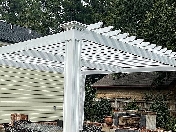 3 bedrooms 2 bathrooms open concept 9 ft ceilings, large walk-in pantry, easy access w/d main floor, lots of kitchen cabinets, leather granite countertops over looking large living room area with gas log fireplace. Has large enclosed sunroom lots of windows. Master bedroom has seating area walk-in closet along with large master bathroom, 2 sinks leather countertop, huge shower 7 ft glass door surrounded with marble walls and floors. Brick / Outside patio open pergola with large fireplace/ grill, surrounding brick walls to enclose patio area