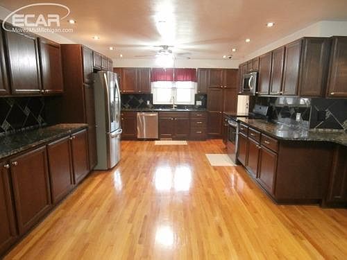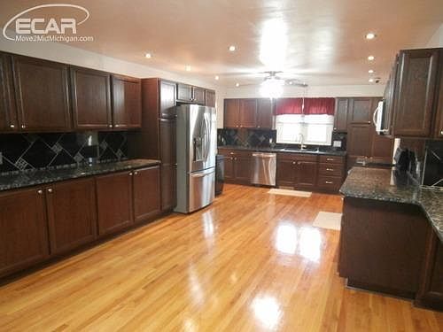 Four bedroom, 3.5 bath brick ranch on nearly an acre in great location just outside city limits! This home has it all! Huge kitchen with granite counters and SS appliances! Over 2,500 square feet on main level! Hardwood floors throughout! Heated sunroom with hot tub and slider to in-ground pool with new tile and stamped concrete surround 2015! Gazebo new 2015 too! Att. 2+ car garage, plus 22x70 pole barn! Finished basement with family room, 2nd kitchen, possible additional bedrooms, bathroom, and egress window. Lots of extras including security system, generator ready, pellet stove, wood burning fireplace and more!