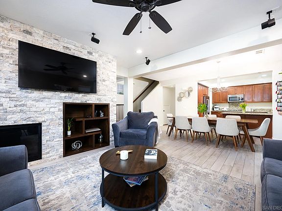 Welcome to this stunning 4-bedroom, 3.5-bathroom home in the highly sought-after community of Eastlake, Chula Vista! This beautifully designed residence offers a perfect blend of modern convenience and timeless charm. The entry level features hard flooring for easy maintenance, while the second and third floors and bedrooms are appointed with plush carpeting for added comfort. The spacious, updated kitchen boasts solid wood cabinetry, granite countertops, and stainless steel appliances, making it a chef's dream. A convenient second-floor laundry room, updated windows, and modern lighting add to the home's thoughtful design. Step outside to enjoy the paved side patio, perfect for entertaining or outdoor cooking. The home also includes an attached two-car garage for added convenience. Located in a vibrant community, you'll have access to amazing amenities, including a huge swimming pool, a kids' recreation area, a large spa, and a well-equipped clubhouse. This move-in-ready home offers the ideal combination of style, comfort, and community living—don’t miss the opportunity to make it yours!