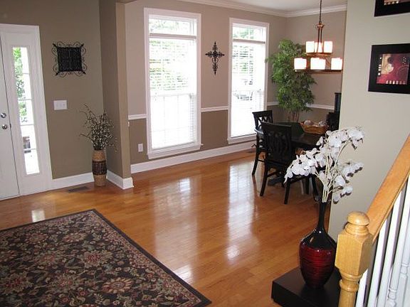 Home in Mckays Mill. Hardwoods in kitchen/dining/entry. Double oven, Upgraded lights, sink & facet in kitchen. Upstairs master w/Lg walk-in closet/en-suite bath. Built-in'saround fireplace in LR, master on main, covered deck & fenced back yard.