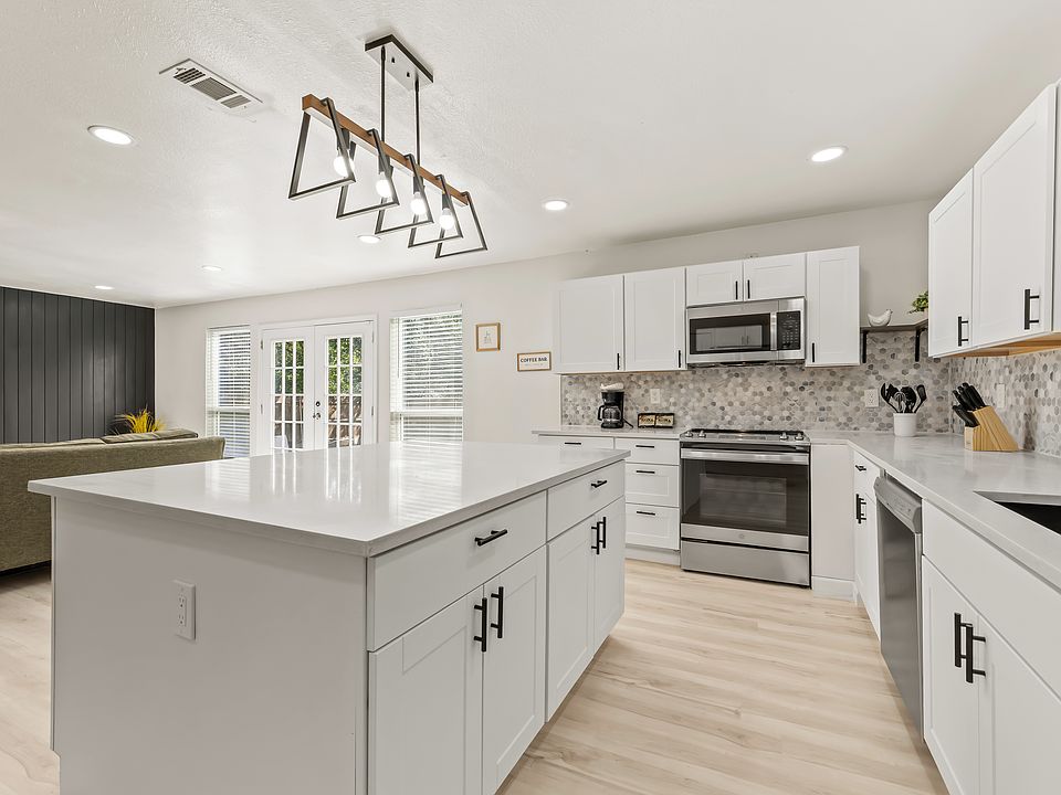 Kitchen is equipped with all new stainless steal appliances and large island. Pantry closet is oversized along with laundry room with ample storage. Bedrooms have nice vinyl plank flooring and are spacious in size. Primary suite has large walk-in closet, oversized bathroom and lots of storage. Perfect for families, business travelers, or groups looking for a peaceful getaway just minutes from everything North Dallas has to offer!
