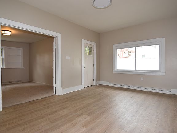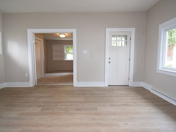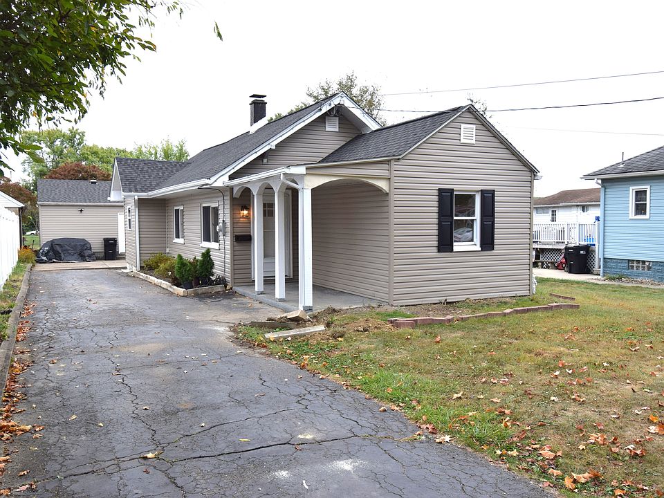 First floor living. 2/3 bedroom Completely remodeled. New roof, new siding, new bathroom, new carpet, new kitchen. Detached large garage for 2 cars. Large basement with full bathroom and two other rooms for storage or bedrooms. New LVT and ceramic tile in kitchen bathroom and basement. Flat yard on a dead end street in a nice neighborhood.