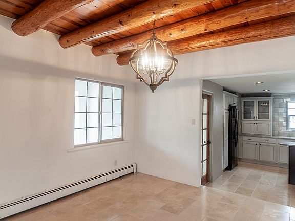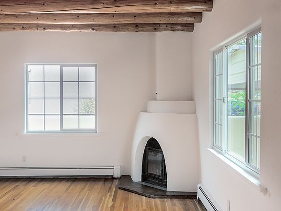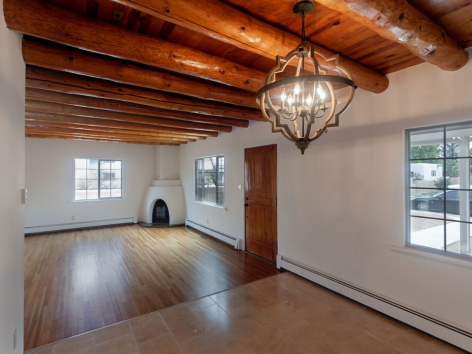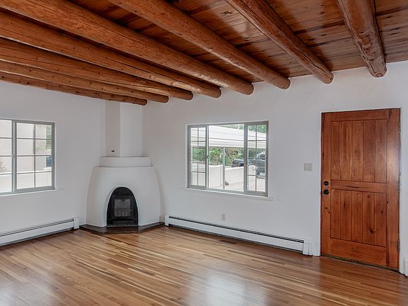 Beautiful Casa Algre Stamm home with wood floors, kiva fp, vigas and recently remodel to fit todays lifestyle. Modernized kitchen with all new appliance, cabinetry, granite tops, pantry, an island with sink and plenty of wall space to mount flat screen tv. Bathrooms have been tastefully remodeled; a walk-in closet has been added to the master and the laundry/mudd room with direct entry. Office/studio with half bath and direct entry. Upgrades include exterior stucco, windows, roof currently resurfaced with silicone and five year warranty. Large backyard with fruit trees, storage, and covered patio. This is a must see home in one of Santa Fe's most desirable neighorhoods.