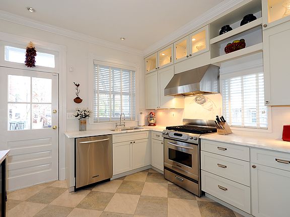 Handsome 4-level attached row house in Mount Pleasant, elegantly renovated by BrookRose Development in 2005. Many amenities, including 2 levels of decks at rear of house and complete in-law suite on lower level.