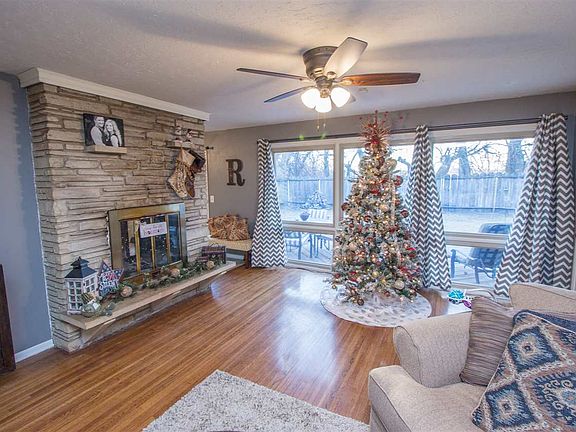 Located on a quiet street, with no neighbors behind you, this home offers great privacy while also being close to everything on the East side. This beautiful 3 bed, 2 bath house still has its classic charm, featuring oak hard wood floors in living room along with a huge stone fireplace in the living and dining area. The home also offers all updated high efficiency vinyl windows throughout, a gas heated and cooled garage, and a wood patio out back. Call today to set up a private showing!