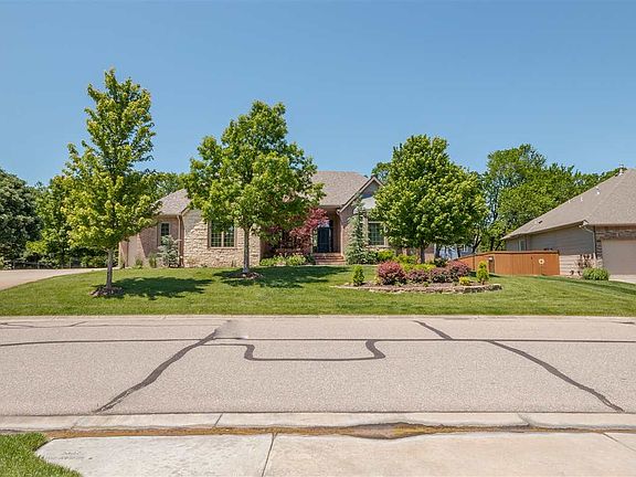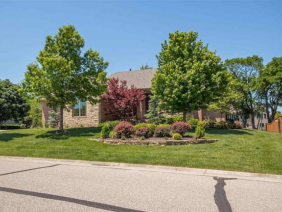 VERY MOTIVATED SELLER - WILLING TO NEGOTIATE - BRING ALL OFFERS!! Nestled in the ever popular Pointe at Reeds Cove, this 5 bedroom 3 full & 2 half bath home is one to see! Beautiful landscaping and front exterior, side load garage, and a covered front porch grab your eye right at the street. The lot is over 1/2 acre professionally landscaped and features an irrigation well. It is fenced, wooded and very private with a tree row in back for privacy and it's located on a cul de sac lot. The interior features hardwood floors, white enamel trim, a gourmet kitchen with gas range, double ovens, a large granite island and a very large walk in pantry. There is a breakfast nook and a formal dining room. The Master Suite is stunning with tile shower, whirlpool tub, double vanities and spacious walk in closet with built ins. There are 2 additional bedrooms, full bath and a half bath on main level. The lower level is a walk out and offers a spacious recreational and game room with another fireplace. 2 bedrooms, a full bath, 1/2 bath and a full size wet bar with appliances. Ample storage completes the lower level. This home is equipped with a new roof, gutters, windows and exterior paint in 2019. New HVAC and hot water heater were installed 2 years ago. The sub-division is beautiful and children friendly with large sidewalks, fishing lakes, playground, swimming pool and clubhouse! Located in the desired Andover School District. There is quick access on 96 highway to Koch, medical and downtown. Just minutes from fine dining and shopping! Call today for your private showing!