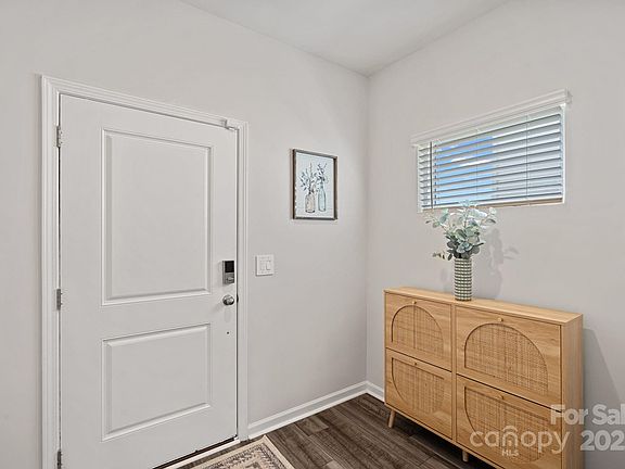 Like- New Energy Efficient End Unit Townhome in Concord. This better than new two story townhome has been gently lived in for just over a year and it is move-in ready with all the extras already added - washer, dryer, refrigerator, and window blinds all included. Thoughtfully designed with an upgraded designer interior color package, this home combines style, comfort, and convenience. The open concept main level features a spacious kitchen with a large island overlooking the dining area and family room, perfect for both everyday living and entertaining. Upstairs the primary suite boasts dual sinks and large walk in closet. Enjoy low maintenance living with HOA covered exterior care and outstanding community amenities including a swimming pool and cabana. Just minutes from the Cannon Ballers baseball stadium, shopping at Afton Ridge and Concords best dining options , this location offers something for everyone. This home is built with innovative, energy efficient features designed to help you enjoy more savings, better health and peace of mind.