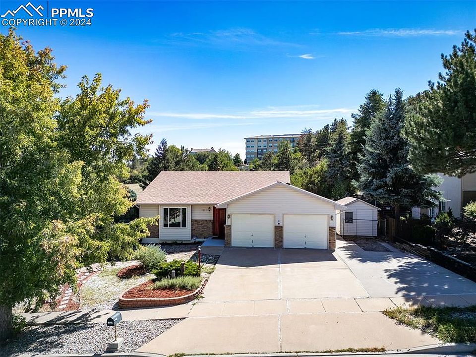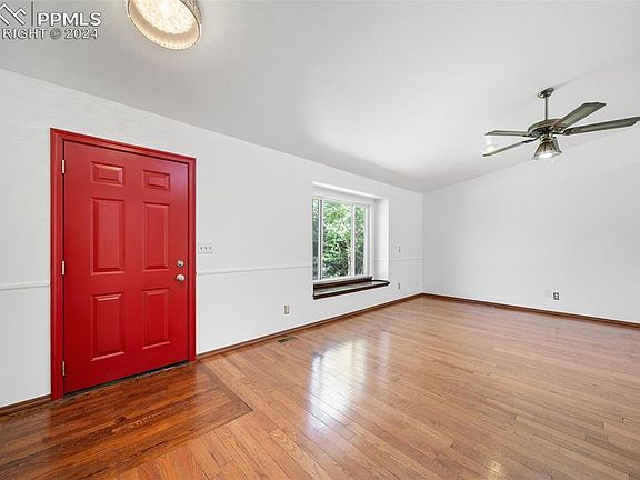 Charming 4 bedroom, 2 bath ranch in Campus Commons is ready for you to move in! Situated on an almost 1/4 acre lot nestled on a hill behind the UCCS Farm and Sustainable Home. Inside, elegant hardwood floors greet you and vaulted ceilings and skylights bathe the space in natural sunlight. A cozy window seat in the living room is a great space to read a book. The kitchen has been updated with gorgeous maple cabinets, stainless steel appliances and a new sink! The kitchen has space for a small table, and the formal dining room is spacious and light for larger gatherings. The primary suite has french double door entry, gorgeous brand new luxury vinyl plank floors, and a large walk-in closet for all your storage needs. The en-suite bath has a jetted tub and separate shower! Down the curved staircase, the basement offers three more spacious bedrooms, as well as space for recreation and a nook for a work from home space, all graced with luxury vinyl plank! The basement has a separate entrance from the backyard, and also has a large laundry room with washer and dryer included! Newer Anderson windows, newer furnace, and brand new roof, so you don't have to worry about big ticket items! Step outside to the expansive backyard—fully fenced for privacy and ready for summer barbecues, gardening, or simply soaking up Colorado’s beautiful sunsets. The observation deck is a great location to take in vast expanses and all that nature has to offer. Two sheds, as well as the two car attached garage make it easy to find storage space for your camping gear and more! Easy access to the UCCS campus, as well as lots of restaurants and shopping! Tour this home today, and don't hesitate to write an offer!