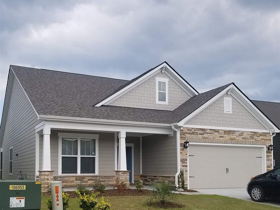 Welcome to Park Place in Market Common, a Natural Gas community that offers walkability and golf cart access to the beach, shopping,dining, entertainment, and weekly downtown events! This available home is the Augusta plan. With James Hardie Fiber Cement Siding,this 1-story, 3 BD plus a study, 2 BA home includes a front and rear covered porch, vaulted ceiling, tray ceilings, and bay window providing an exquisite open-concept. Kitchen features 42" white cabinetry, quartz countertops, pendant lighting, tile backsplash, andstainless Whirlpool appliances. Luxury vinyl planking flooring in the main living, ceramic tile in bathrooms and laundry. The owner's bath features our signature Zero-Entry Spa Shower, double vanity, and oversized walk-in closet. Washer, dryer, fridge, blinds, and refrigeratormakes this home move in ready! Designer trim package of chair rail, picture frame and crown moldings are included. Come tour thishome today! *Pictures shown are from previously built homes. Information listed is subject to change. We are currently OPEN byappointments only at this time. Call Today! Thank you!!!!