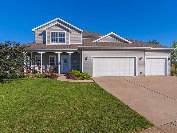 This is a Unique Plan with huge wrap around porch in a cul-de-sac. Large open area family room to huge kitchen. Kitchen has custom Cherry Cabinets with large table that functions as an Island, soft closed cabinet doors, with dove tailed drawers. Dual Zone Temperature controls. 9 foot ceilings on main floor and basement. Home has 2 sets of steps to basement. 1 Bedroom on first Floor, 3 bedrooms on second level all with walk in closets and built in organizers. Large Master bedroom 16x16 with large master bath. Master Bath shower tiled recently professionally redone. Backyard has nice oversized brick paver patio. Basement roughed in for bathroom. Whole house fan.