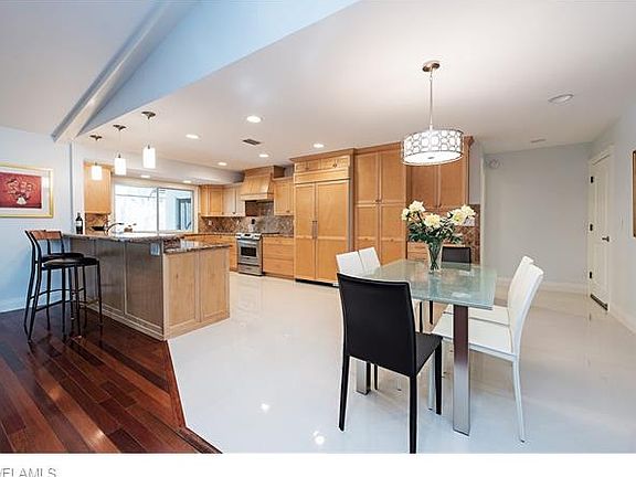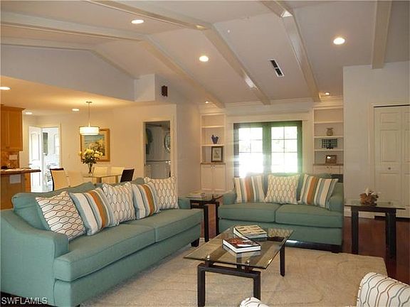 Your search is over! This beautiful 3 bedroom/3 bath estate pool home on large private lot has been tastefully remodeled with high-end finishes (completed 5/2016) & feels "like new." Conveniently located to Mercato, beaches, I-75. A fountain greets you as you enter this "Coastal Contemporary" style home, featuring preferred split-floor-plan, maple cabinetry, granite & marble counters, new 5" baseboard & 3" casing, vaulted living area ceiling with custom beams, back-lit crown molding, newer maintenance-free windows, A/C (2013), pool cage, tile roof (2011), paver pool deck & driveway, 12" x 24" porcelain tile, cherry flooring, KitchenAid appliances, wine frig, laundry, ultra-violet air purifier, recirculating hot water system, loads of storage with seven closets! Open floor plan is great for entertaining with three sets of sliders (two that pocket) that open to covered & open pool deck, where you can either sit out of the sun under roof or sun bathe. Best of all: home does not require flood insurance, has its own well (w/new pump!) for irrigation (5/2016), and HOA quarterly dues of only $423. Move-in condition, ready to go, this home is a great value & needs nothing but you!