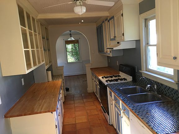 House completely renovated and redesigned in 2002 by professional carpenter/owner. Unique wood paneling features throughout. Redesigned rooms enhance feeling of spaciousness. Combined living room and dining area with designer fans and lighting. 3 similar-sized bedrooms accessed through a small lobby space at center of house. Long galley kitchen with extensive woodblock countertop. Several conveniently placed power outlets for countertop appliances Gas oven. Cupboards across both sides of kitchen. Dishwasher, Fridge, Washer, Dryer at rear of kitchen. Small screened-in porch at rear that leads to a brick tile patio and gas grill. Back yard is large fenced-in, and includes a renovated air-conditioned studio space for storage use. Rent does not include utilities.