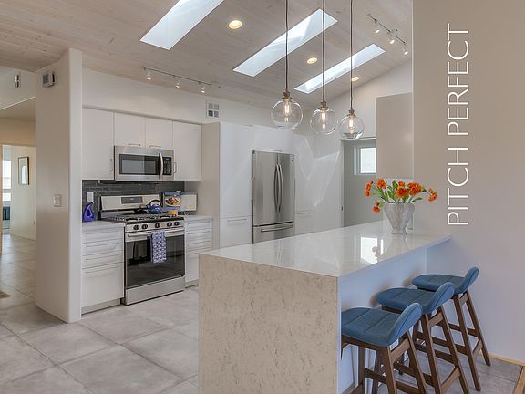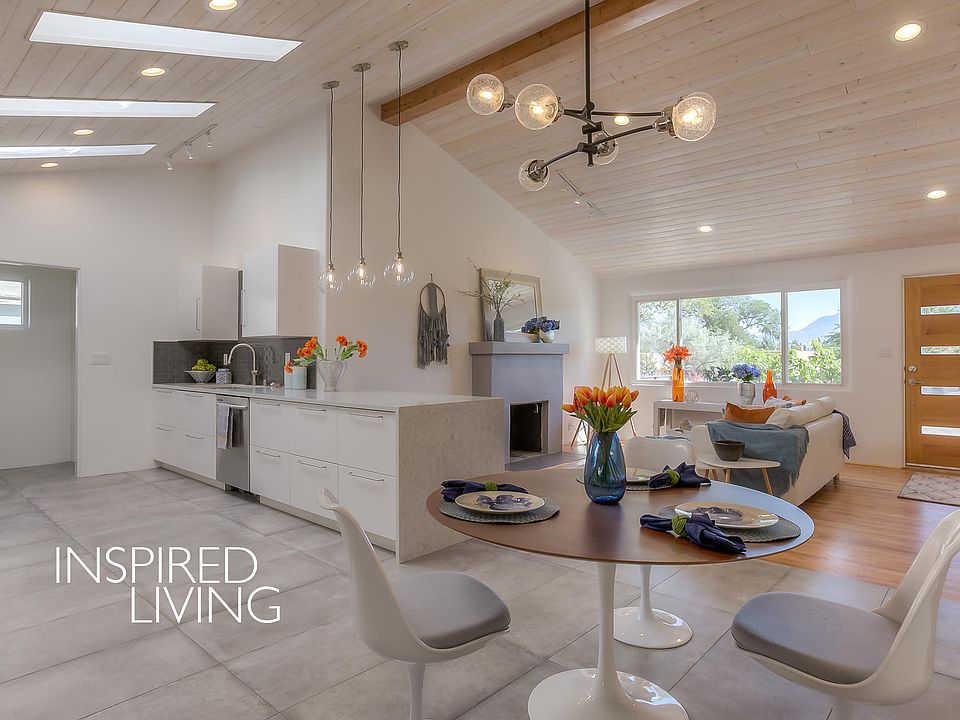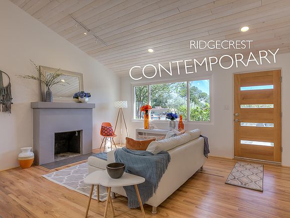 Amazing Makeover in Ridgecrest. Stunning, light & bright, fully updated & remodeled by award winning architect. 3 BR 2BA. Gorgeous open- concept great-room with soaring vaulted, beamed ceiling & skylights. Glowing hardwood floors. Incredible white & stainless kitchen, quartz waterfall counter & all new appliances. New! New! New! All new Roof, Sewerline, Plumbing, Electric, Heat/Cool, & designer finishes throughout & more. Beautiful interior spaces flooded with natural light. French doors integrate indoors with outdoors. Great for entertaining. Spacious light-filled master suite also opens to patio. Stylish master bath is a show stopper with large walk-in shower & closet. Private backyard with tons of potential & a $3K landscape allowance! Plus, a 1-car garage. Absolutely must see!