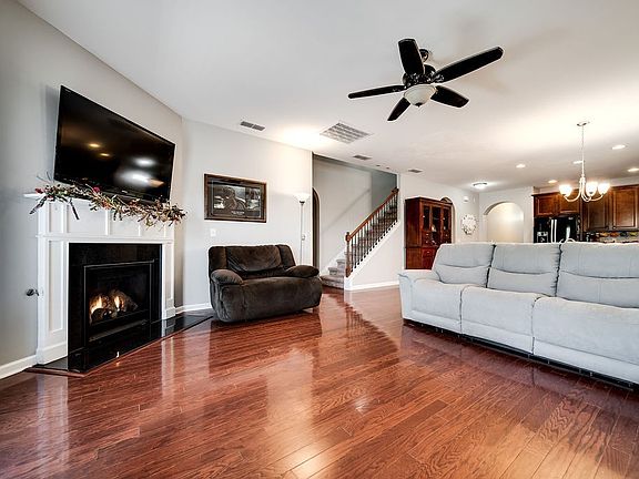 This custom 4 bedroom home offers lots of builder upgrades along with 3 full baths - Large kitchen with custom cabinets large island for extra seating, appliances included, hardwood floors, granite counters, lots of large windows, working from home? Great options for bonus area and office nook area. Master suite with custom tile, gas fireplace, Home is also wired for cable/satelite and internet in all rooms in home, It has arched doorways, wrought iron staircase. Fenced in back yard with beautiful landscaping, covered back porch. wired for alarm system, 2 car attached garage, Community pool with low HOA fees. Call to hear about great financing options!