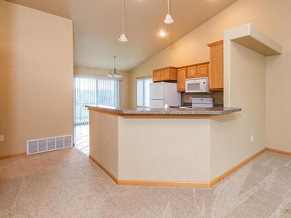 Well maintained townhome in the 55+ Retirement Community of Fountain Springs in NW Rapid City. Wonderful curb appeal and plenty of natural light provided by the extra large windows. Vaulted ceilings, breakfast bar and patio area lend to an inviting kitchen space. The 16x14 master bedroom has a walk-in closet with step-in shower. This home is designed with many accessibility features: zero step entrance, wide hallways, large doorways, large bathrooms with step in showers. HOA in place for lawn care and snow removal services for $100 per month. Property also has a 1200 square foot unfinished basement for plenty of extra storage or to be finished!