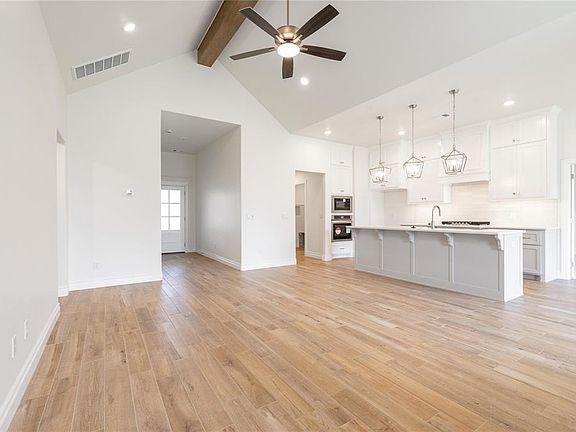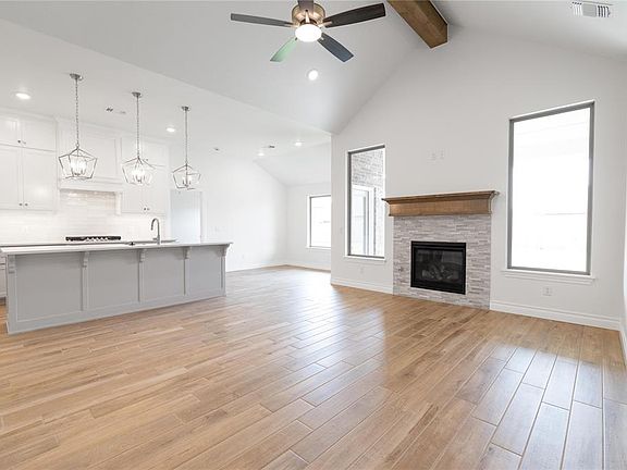 This Blue Spruce floor plan features 2,185 Sqft of total living space, which includes 1,900 Sqft of indoor living and 285 Sqft of outdoor living. This exceptional Taber home offers 4 bedrooms, 2 bathrooms, 2 covered patios, a utility room, and a 3 car garage with a storm shelter installed because, at Homes by Taber, safety is not an option. The well-curated great room presents a well-crafted cathedral ceiling, a gas fireplace with our stacked stone surround detail, large windows, wood-look tile, rocker switches throughout, and Cat6 wiring. The high-end kitchen boasts custom-built cabinets to the ceiling, stunning pendant lighting, a center island with a trash can pullout, stainless steel appliances, 3 CM countertops, modern tile backsplash, a walk-in pantry, and more wood-look tile. The prime suite is tucked away and features a sloped ceiling with a ceiling fan, windows, and our cozy carpet finish. The prime bath has a dual sink vanity, a free-standing tub, a private water closet, a walk-in shower, and a HUGE walk-in closet. Outdoor living supports a wood-burning fireplace, a gas line, and a TV hook up. Other amenities for this home include our healthy home technology, an air filtration system, a tankless water heater for endless hot water, R-44 & R-15 insulation, and so much more!