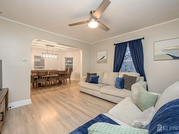 Classic charm meets modern living in this lovely 3 Bed 1.5 Bath Colonial in thriving Piscataway! Beautifully maintained inside and out with plenty of upgrades all through, move-in-ready and waiting for you! Covered rocking chair front porch welcomes you into a bright and airy interior with laminate flooring that shines and a crisp neutral palette that is easy to customize. Spacious living room flows right into the formal dining room for seamless entertaining. Kitchen offers sleek SS appliances, ceramic tile flooring and backsplash, ample oak cabinetry and elegant crown molding. Versatile Den makes a great Home Office and opens to the lovely covered porch, overlooking the plush backyard. Convenient 1/2 bath and laundry closet rounds out the main level of this gem. Upstairs, the main full bath with dual sinks, along with 3 generous bedrooms. Hardwood flooring extends beneath the laminate flooring on both levels. Partial Finished Basement is an added bonus, boasting a workshop, rec room, and addtl storage area. Oversized detached 2 car garage with electric and overhead storage adds to the package, offering a a rear screened-in porch with electric; a great spot to relax and unwind with nature! Sprawling backyard with large storage shed and playset is fenced-in for your privacy and comfort. Extra long driveway offers plenty of parking, too. All in a prime commuter location, close to the bus line, train station, shopping, major roadways, Rutgers University and more! Don't miss out! Come & see TODAY!!