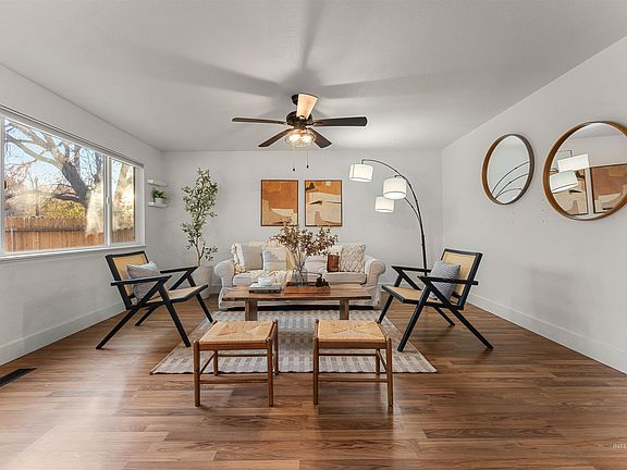 A quintessential Boise Bench charmer, hidden at the back of a peaceful cul-de-sac, surrounded by mature trees. Enjoy a space maximizing floor plan which comfortably delivers 4 good sized bedrooms. The primary bedroom features an ensuite bathroom, rarer for the age and location. Updates throughout the home, including flooring and an overhauled kitchen with newer appliances, countertops, and tile. The rear slider opens up to a large yard featuring a generously sized attached storage shed offering ample space. Enjoy peace of mind with brand new HVAC and a 1 year old water heater and sprinkler system. Benefit from an unrivaled location, just moments above BSU campus with quick and direct access to Federal Way and downtown Boise. A prime opportunity as a primary residence or equally conducive to renting due to the location and bedroom count.