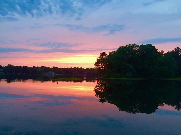 Incredible Sunset Views from this lakefront home. Great location for commuters. Single family home on Bungay Lake available for year round rental. Eat-in kitchen has cherry cabinets and a built-in china cabinet. Bedroom with two large custom closets, living room and dining area all overlook a west-facing cove on Bungay Lake. The home has two bathrooms and lots of storage space. A spacious room with large sliders opening to a stone patio overlooking the lake can be used as a second bedroom, office, guest room, family room or man-cave. There's also an extra room that can be used as an office, reading nook, craft room, or simply an extra storage space. Bonus features include a private dock off the patio, detached single-car garage and off-street parking for 2 cars, and a separate storage room for kayaks and patio furniture. Home has central air, oil heat and hot water. Appliances include range, dishwasher, brand refrigerator, washer and dryer. Bungay Lake is a private, recreational lake. Very close to Routes 95 ( 3 miles), 495 and 295, and both Mansfield ( 5 miles) and Attleboro (4.5 miles) train stations. Utilities are not included in rental fee. No smokers, no pets. Apply using Cozy. Copy link: https home.cozy.co/apply 480203 Utilities are not included. Tenant must have excellent credit score and clean background check.