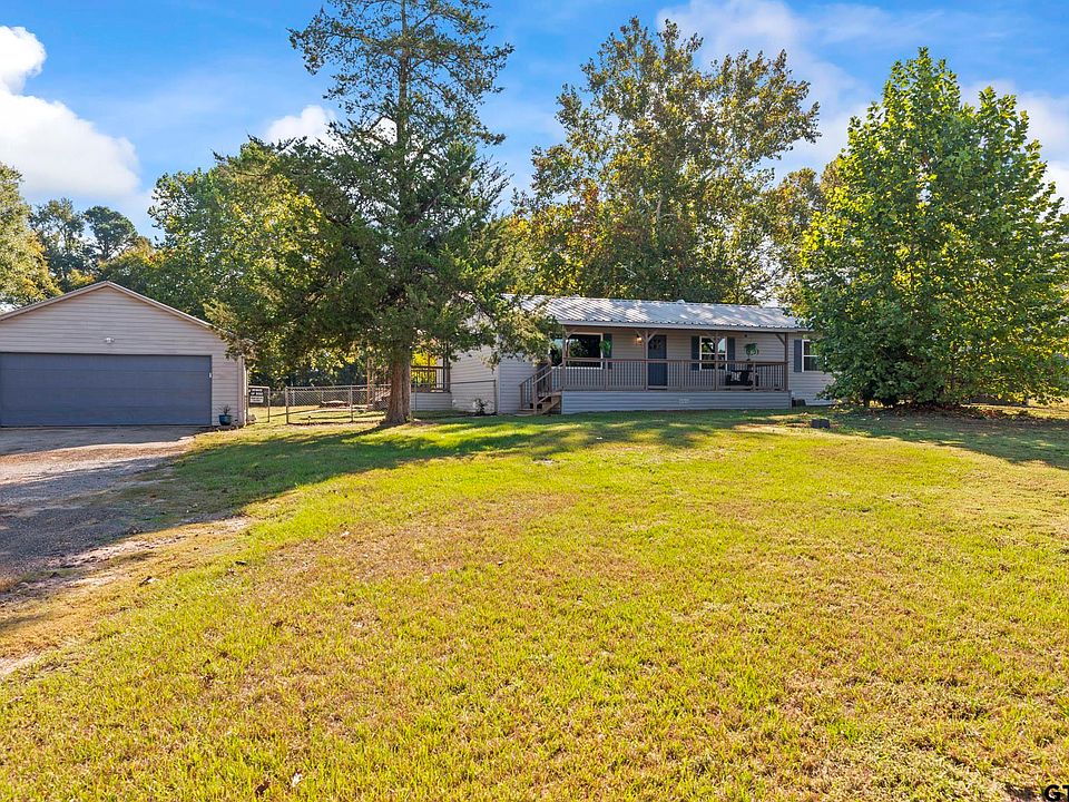 This immaculate ranch home is move in ready, offers 3 bedrooms, 2 full bathrooms, and has a completely renovated interior with tasteful updates throughout. Kitchen has new cabinets, with quartz countertops and stainless-steel appliances. The kitchen sink has a waterfall and glass cleaning feature. The Master bedroom suite includes a huge walk-in closet and a stunning master bathroom. Located on 1.15 Acres and has fruit trees. There is a large, covered front and back porch deck. Has a two-car detached garage. Back yard is partially fenced in. This, semi-rural area gives space, privacy, and beautiful scenic views. Great Country living located only 10 Minutes to downtown Lindale and 21 minutes to Tyler. Enjoy recreational activities at Tyler State Park only a 10-minute drive.