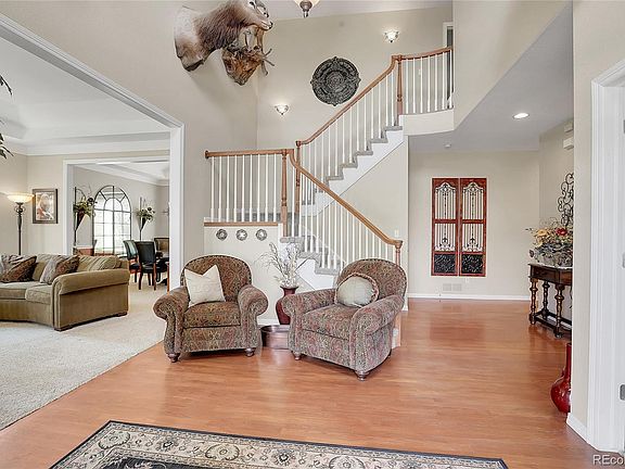 Discover luxury living in this executive estate nestled on a sprawling 1.04-acre lot. This exceptional property combines elegance, comfort, and outdoor sophistication, creating an idyllic retreat for those seeking the finest in residential living. Perfect for entertaining or relaxing, the expansive outdoor patio features tongue and grove ceiling and a stunning fireplace, providing warmth and ambiance for evening gatherings year-round. The private Reardon pool with a depth of 9ft, relaxing water fall and soothing hot tub are set against the backdrop of lush landscaping with serene surroundings. oversized entry with Step in to the oversized entry with vaulted ceilings and wood floors. Gorgeous study with built-in features and plantation shutters. Then discover a meticulously designed interior boasting high-end finishes, spacious living areas, and abundant natural light. The gourmet kitchen, formal dining room, and luxurious master suite with sitting area are just a few highlights of this remarkable home. The additional bedrooms include a jack and jill bathroom between bedrooms 2-3, and the 4 bedroom has it's own ensuite. Enjoy the peace and privacy of this secluded estate, while still being conveniently located near top-rated Cherry Creek schools, shopping, dining, entertainment options, and easy access to DTC and DIA. This executive estate offers a unique blend of sophistication, comfort, and outdoor oasis luxury. Whether hosting grand events or enjoying quiet moments with family, this property is the ultimate sanctuary. New furnace/AC 2024. New roof 2023/New windows 2018/New hot water heater 2022/New concrete driveway 2022
