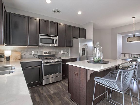 EXCITING OPPORTUNITY SELLER TO OFFER FOR A 2-1 BUY DOWN save HUNDREDS a MONTH AND YOUR FIRST 3 MONTHS OF HOA WILL BE CREDITED AT CLOSING! Your dream home awaits in the heart of Anthology, this beautifully updated, brownstone is located on a quiet street and filled with wonderful upgrades that you are sure to appreciate! Upon entering, you will be in awe of the soaring ceilings and oversized windows that allow an abundance of natural light. Relax in the spacious living room. The kitchen features an island with bar seating, upgraded 42" cabinets, gorgeous quartz countertops, ample counter and cabinet space, backsplash and stainless steel appliances. A spacious dining area that overlooks the living space is perfect for entertaining. Enjoy the Colorado outdoors year-round on your private balcony. Upstairs you will find the primary bedroom suite complete with a luxurious full bath with double vanity, a custom-designed walk-in closet and a secondary closet. There are two additional spacious bedrooms (large closets with an organizer), an updated full bathroom and laundry area finish out the upstairs living space. Oversized two-car attached garage includes a storage closet and additional storage space. Enjoy the neighborhood amenities with access to the pool and clubhouse. Conveniently located near parks, shopping, restaurants and schools with easy access to Parker Road, I-25 and E-470. All you will need to do is simply move into this charming home.