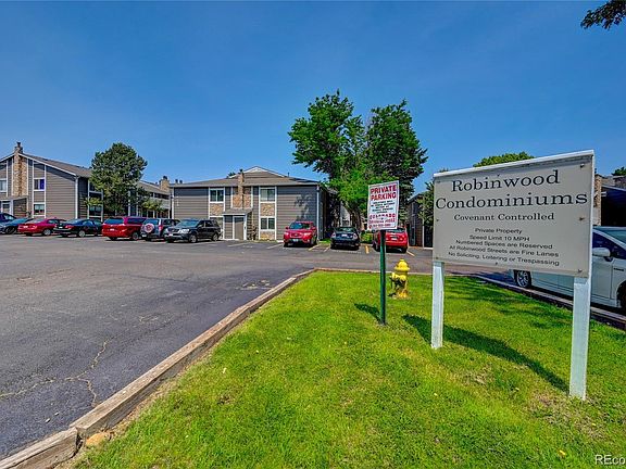 Clean second story 3 bedroom 2 bathroom condo in Robinwood. Granite counters, tile floors in the kitchen and new paint and carpet. Plenty of natural light in this unit. Nice sized dining room that flows into the living area with a fireplace. Located close to shopping, restaurants, Aurora Mall, transportation, shopping, CU Medical Center, Buckley AFB, and easy access to E-470. This unit comes with 2 reserved parking spaces.