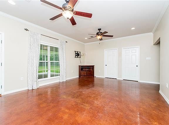 Fantastic 3bd/2bth home on a .94 acre lot just mins to downtown/shopping/schools! Quiet cul-de-sac lot. Open, split floor plan features stained concrete floors, crown molding throughout, stainless appliances and TONS of storage everywhere. Primary ensuite has jetted tub & walk-in shower. HUGE covered patio, fully fenced yard. Ample parking on extended driveway. Rear yard access. Energy efficient Carrier A/C and energy efficient water heater. Flood zone X! Qualifies for 100% Financing. MAKE IT YOURS TODAY!