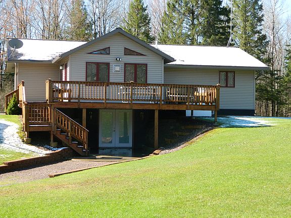 One of a kind home, a must see for all that this home has to offer. Recent updates and remodeling put this home over the top. Super clean with details galore! Lots of room to unwind and entertain on the main level as well as the lower walkout that includes full bar and custom recreation game room area for guests. Ride your snowmobiles and ATVs from the house to access the trails. This wooded private acreage has abundant wildlife and on a dead end road so no thru traffic. Only 1 mile from Bergland and the boat launch on the North end of beautiful Lake Gogebic. This home features lots of storage with a 2-car detached garage and a big 40' x 48' pole building featuring tall 16' sidewalls, with water and electric. There is another storage shed for more room.