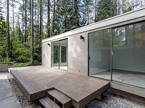 Mid-century modern treasure revived with clean lines, bright spaces, desirable open floor plan, floor-to-ceiling windows, huge private lot in a nature setting, extensive decking creates cohesive indoor, outdoor living, 2 Masters w/decks, new professional grade kitchen with island and ample storage, open beam ceilings, great natural light, sunroom, marble, tile, skylights, glass backsplash, large bar and 4 full baths, Remodeled, central location, quiet setting!
