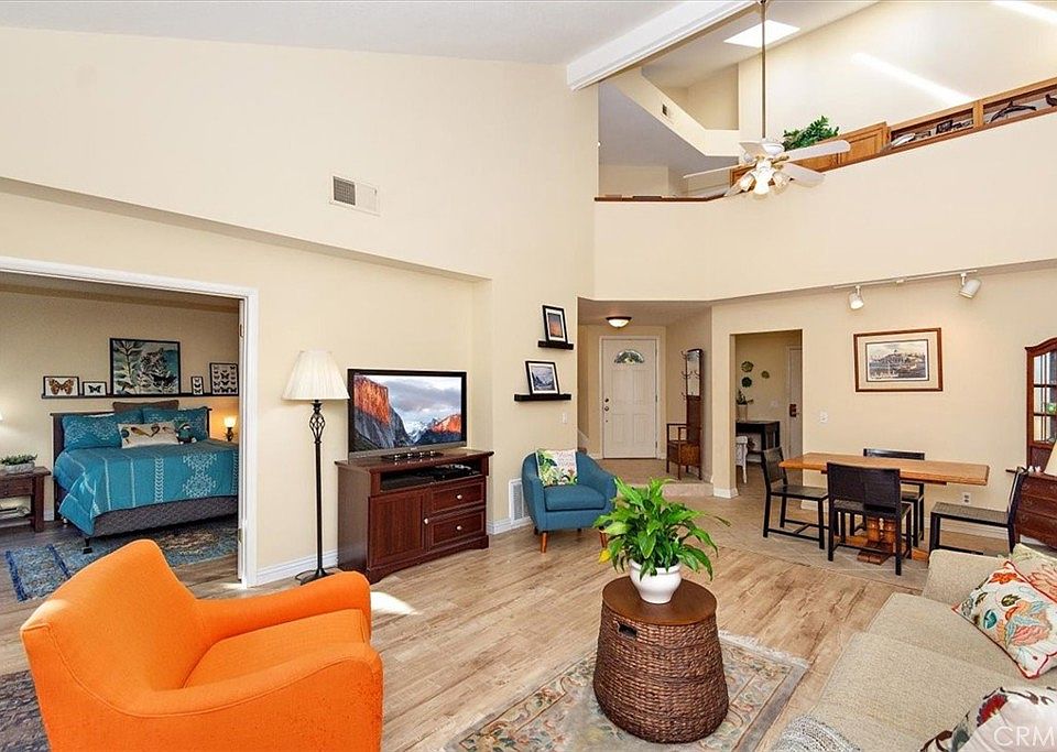 Welcome to 18136 Bird Court – your dream home in the heart of Fountain Valley! This impeccable townhouse boasts a fantastic 3-bedroom, 3-bathroom floor plan. Plus the first floor features a full bedroom and bathroom, offering flexibility and accessibility. Meticulously maintained and upgraded, this residence is in excellent condition. Recent improvements include newer windows, a tankless water heater, and a new AC compressor – ensuring modern comfort and efficiency. As you enter, the living room will greet you with its vaulted ceilings, fireplace, plantation shutters and many windows that look out onto the darling back patio. This open space includes a large dining area, just off the kitchen. Step outside to your own private oasis – a spacious back patio adorned with charming brick planters. This tranquil space is perfect for unwinding and enjoying the surrounding nature. Being an end unit, the townhouse is tucked into a quiet nook of the community, offering privacy with no neighbors in the back and sharing only one wall. The darling kitchen features attractive neutral Corian-type countertops, stainless appliances, a large pantry, plentiful white cabinets and an eat-in kitchen nook situated next to a large, bright window. Upstairs, a large loft awaits, complete with a built-in desk, cabinetry, a Murphy bed, and two skylights that bathe both the loft and downstairs living space with natural light. The large two-car garage is a standout feature, boasting finished flooring, an automatic opener, laundry hookups, and plenty of cabinets and shelving for organized storage. The home is ideally situated in a tranquil neighborhood with expansive greenbelts and a refreshing community pool. Here, you can live in a peaceful retreat while remaining conveniently close to the 405 for an effortless commute. Shopping, restaurants, parks, and top-rated schools are all within easy reach, enhancing the overall appeal of this location. Don't miss the opportunity to make 18136 Bird Court your home – a perfect blend of comfort, style, and practicality. Schedule a viewing today and experience the exceptional lifestyle this townhouse has to offer!