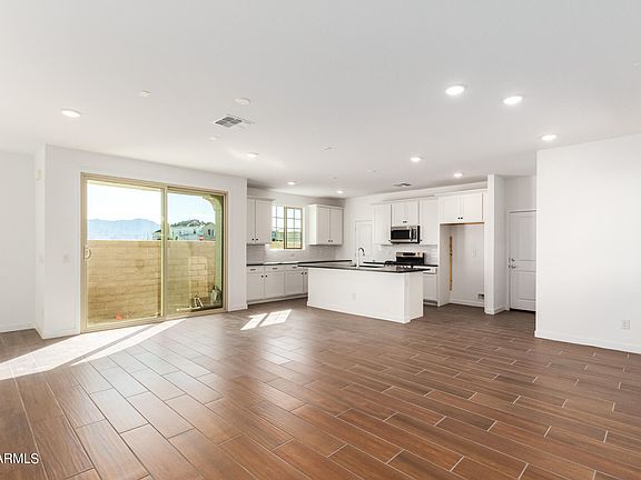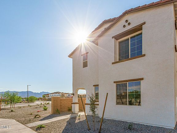 MOVE-IN READY! First of its kind in the desirable master planned community of Estrella. 4 bedroom, 3.5 bath High Performance Home consists of a first-floor open concept with the living room, dining room and kitchen creatively laid out with side yard patio AND first floor bedroom w/attached full bath. Upgraded flooring, counter tops and 42'' white cabinets are just some of the features. Upstairs is a large open loft, two secondary bedrooms, and upstairs laundry! Large primary suite with enormous walk-in closet and tub/shower combo. Home is equipped for home automation, and promotes a healthy lifestyle with a built-in air purification system. Enjoy front porch living with plenty of common spaces to enjoy the Arizona weather and nearby community center!
