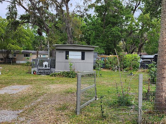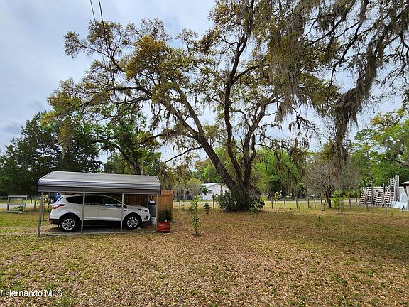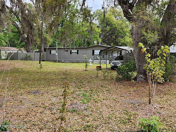 Charming small home on a large 1/2 acre lot. Situated in Garden Grove/Mid Brooksville. Perfect place for simple retirement, rental home, affordable living. Fully fenced yard with a privacy fenced area behind home. Storage sheds for extra storage. Single carport in front just steps from front deck. Back deck/porch is privacy screened making for a great area for morning coffee. Living and Kitchen areas are all open making it feel much larger. 2 bedrooms split by single nice tub/shower combo and updated vanity. Painted outside and inside with updated colors. If you're a plant lover, you're going to love all the fruiting plants/trees, and small avocado trees, papayas, and so much more. New Well house keeps the well equipment protected from the weather. Home is sold as is. No owner financing. Easy to tour with an appointment. If you wish to live simply-you've found it in Brooksville Florida. Only 7-8 minutes to the Suncoast Hwy 589.