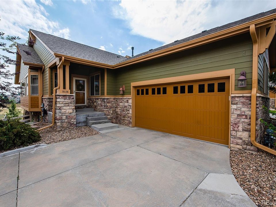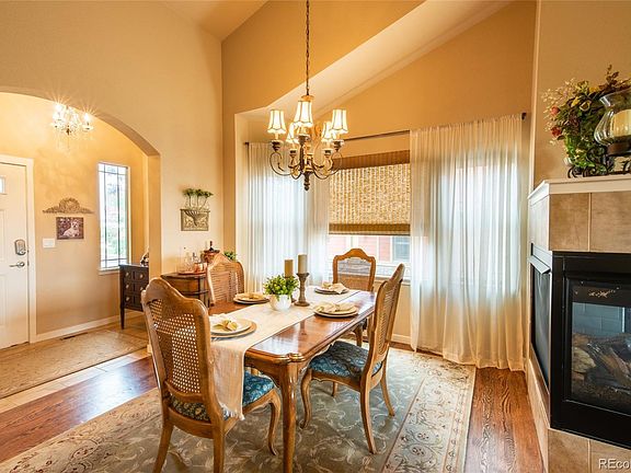 Nestled in Anthologys master planned community in the growing Town of Parker, youll find this impeccably maintained home with an open floor plan, finished walk-out basement and gorgeous covered deck looking out over rolling hills while backing up to Open Space. Your first introduction is the covered front porch, an ideal spot to sip morning coffee in your favorite rocking chair. Step inside to an entrance foyer with a raised ceiling and crystal chandelier before taking in the immaculate open floor plan featuring rich hardwood flooring and vaulted 16 ceiling throughout. Your new gourmet kitchen is a chefs dream offering a slab granite island with breakfast bar seating and wine storage, plus stainless steel appliances including a gas range. Conveniently open to the kitchen, a dining room and great room share a two-sided fireplace creating a warm and welcoming environment. Enjoy the peace and quiet backing up to open space provides from your covered, lighted deck, or unwind on the charming lower level patio with a good book and afternoon cordial. A spacious master retreat complete with a luxurious five-piece bath is ready to become your private retreat. Look forward to ending your day with a relaxing soak in the tub, or an indulgent rinse in the glass shower. Find a second bedroom or home office and a full bath to complete the main level. The finished walkout basement provides ample additional living space, including a family room or rec area, two generous bedrooms and a full bath. Maintenance-free living! HOA includes front & back lawn mowing plus fertilization, exterior paint, snow removal from driveway to front porch! Dont miss out on the chance to become a part of this wonderful community, minutes away from downtown Parker!