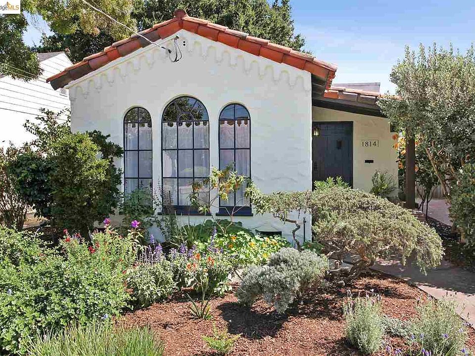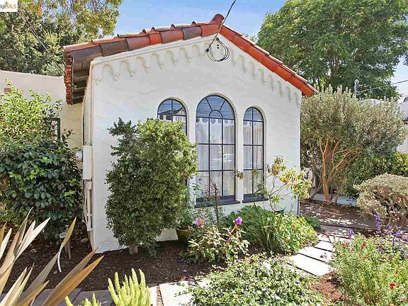 Great street scene near the San Leandro/Oakland border is home to a bright and charming Spanish Revival bungalow. The 1204 SF abode offers 2 Beds, 1 bath, plus a generously sized living room, dining room, kitchen, breakfast room / office w/ sliding barn door, and is bright and delightful...Plus bonus laundry / storage! Authentic period details excite, from the hardwood floors throughout, rough-sawn beams and storybook slate/brick fireplace, to the classic terracotta tile flooring and tongue-and-groove ceiling. A modernized kitchen with new countertops & SS appliances has plenty of storage & size. All spaces have been refreshed with new paint and light fixtures add contemporary warmth. Colorful drought-resistant mature landscaping adds curb appeal and fruit trees / raised veggie beds in large backyard w/ lawn adds comfort and relaxation in this urban oasis complete w/ garden shed. Long driveway to park several cars. EZ commute w/ BART & Fwy 880, 580, 92 close by. Open Sun 2:00-4:30
