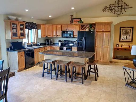 Pride Of Ownership Shines Through This Immaculate Custom Beauty With a VIEW! The open floor plan makes for easy living w/ the kitchen boasting large center island, Arched doorways, & easy care flooring that flow into the dining room w/ patio doors to a graciously sized maintenance free deck! The Living room features corner fireplace and large windows that provides an abundance of natural light! There are two bedrooms on the main level including the master suite with dual sinks, walk in closets, and access to the deck with a VIEW! Lower level boasts a walk out to patio, game area & family room, 2 additional sizable bedrooms & full bath. The Oversized heated & finished 4 stall has water, drain, and heater. Lavishly landscaped w/amazing curb appeal, this home is a must see!