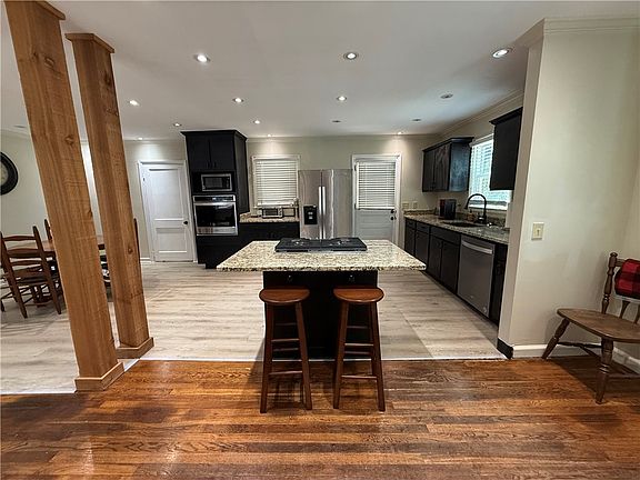 Charming and fully updated 2-bedroom home on a spacious double lot with a dedicated garden area. Recent updates include two fully renovated bathrooms, new ductwork, updated plumbing, and a tankless water heater. Inside, you’ll find a welcoming layout with hardwood and LVP flooring, recessed lighting, and a cozy gas fireplace. The kitchen is designed for both style and function, showcasing granite countertops, a gas island stove, stainless steel appliances, and plenty of workspace. Additional highlights include a single-car garage, two storage shops, a concrete driveway, and 2-inch blinds throughout. The fenced yard adds privacy and space for gardening. Supper covenant to I-85, restaurants and shopping