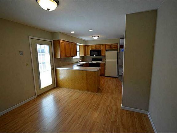 A really nice home with many improvements. Living room leading into Kitchen Dining area. Oak Kitchen cabinets with appliances and laminate flooring. Washer dryer and appliances included. Immediately Available.