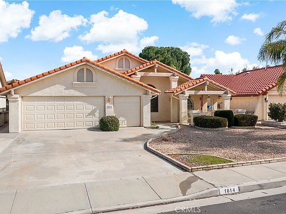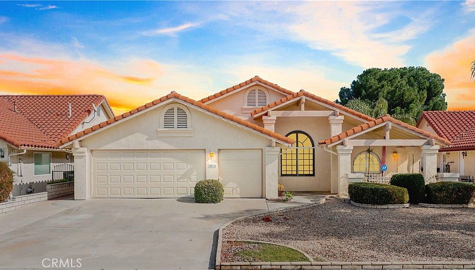 Single-level home in the highly desirable Seven Hills Golf Course Community. Enjoy direct views of the 16th hole of Seven Hills Golf Club right from your backyard. This beautiful home features a light and airy, open floor plan, with a spacious formal living/dining area, spacious kitchen with island that opens directly to the family room. With primary bedrooms on opposite sides of the home, this unique layout provides privacy and flexible solutions for households with competing schedules. Both primary bedrooms have a custom walk-in closet, giving you more storage space than you'll know what to do with. As you enter the home, you'll be greeted by 13-foot vaulted ceilings, adding to the spacious and bright atmosphere. The ultra-spacious kitchen includes a custom island with granite surface and oversized drawers, making meal prep a breeze. Enjoy formal meals in the dining area or relax in the family room with access to the second covered patio area. The abundance of windows throughout the home, including a kitchen skylight, provide plenty of natural light. The exterior of the home includes a 2-car garage, additional garage for golf cart parking and a total of two covered patios. Seven Hills is a desirable community for active adults offering a low-maintenance lifestyle, fantastic amenities, and beautiful homes in the Inland Empire. The center of the community is the Seven Hills Members Club, providing homeowners with endless opportunities for social activity and fitness. The highlight of the community is the 18-hole golf course of generous fairways. With all these available amenities and more, Seven Hills has everything that active adults could need or want in a community. Don't miss out on this amazing opportunity. Schedule a tour today and see for yourself why this is the perfect home for you.
