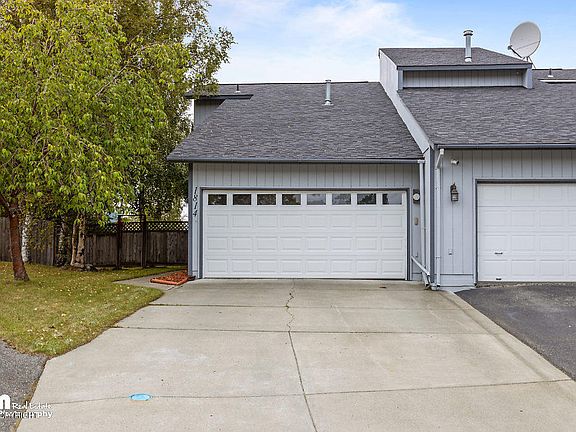 South Anchorage zero lot-line home with kitchen and living space on the main floor, two upstairs bedrooms, a double garage and spacious, fenced yard. New roof and exterior paint 2018. New furnace 2016. Brand new interior paint. Adjacent to Klatt Elementary and very close to the E Klatt bike path and South Anchorage Sport Park. Well cared for by long -term owner.